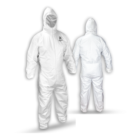 Macacão de segurança, confeccionado em tecido não tecido (TNT) de polipropileno com filme de polipropileno microporoso. Tratamento antestático. Capuz de duas peças com elástico. Fechamento frontal com zíper bidirecional, sem aba protetora, elástico na cintura, punhos e tornozelos. Testado e aprovado em conformidade, segundo a norma ISO: 16602 - Roupas de Proteção Contra Produtos Químicos TIPO 6 - Vestimenta de Proteção Química com Proteção Limitada Contra Líquidos Químicos.