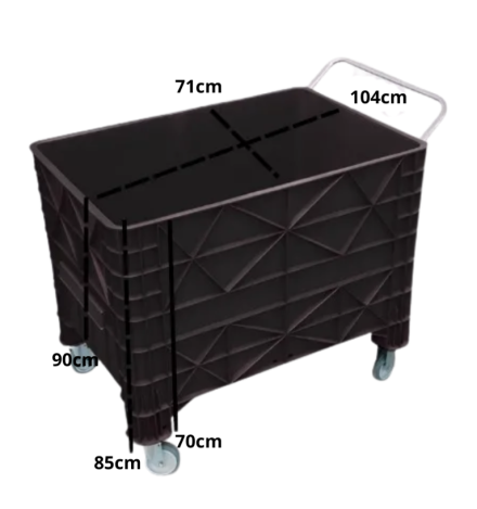 CAIXA PLÁSTICA PRETA 370L COM RODAS E CABO SEM TAMPA