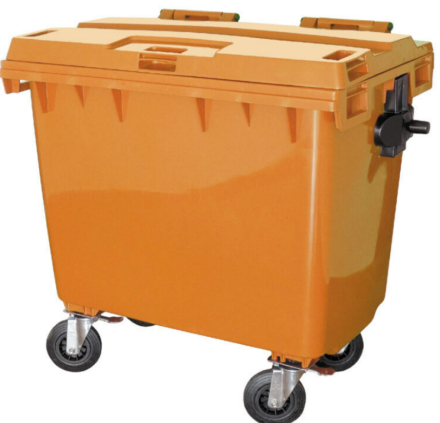 CONTENTOR PLÁSTICO LARANJA COM RODAS